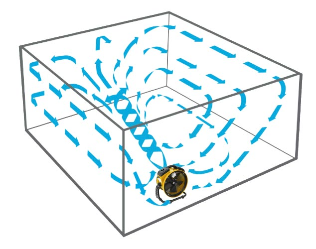 Ondanks zijn compacte afmetingen is de FC-100L geschikt voor uiteenlopende toepassingen. De luchtcirculator is ideaal voor het versnellen van droogprocessen na schoonmaakwerkzaamheden of waterschade, maar ook voor het verbeteren van ventilatie en luchtverdeling in dagelijkse situaties.