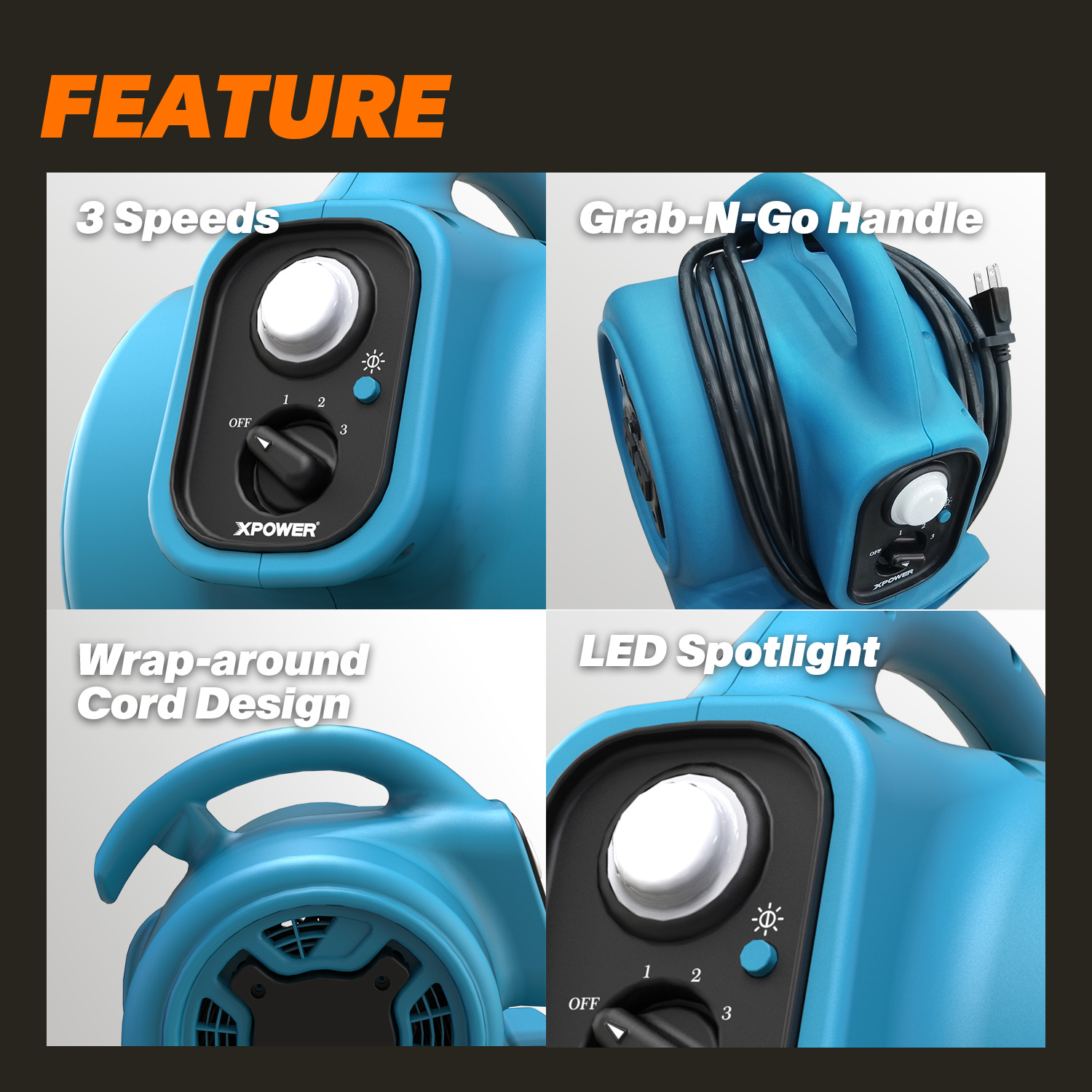 Specificaties: XPOWER P-230L Mini Luchtverplaatser
