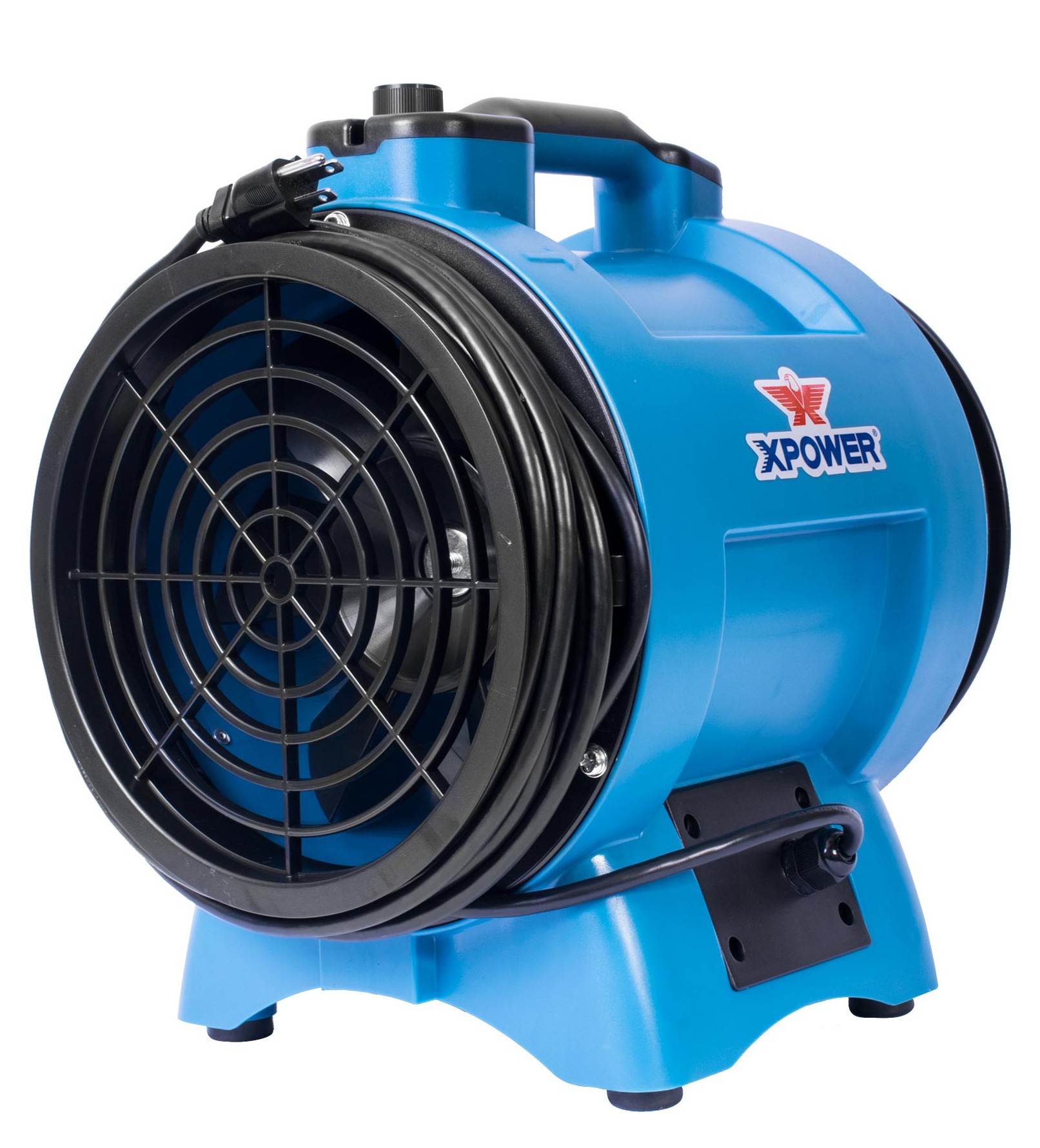 De XPOWER X-8 is de enige industriële ventilator met een diameter van 8 inch voor besloten ruimtes met een variabele snelheidsregelaar op de markt. Dankzij het lage stroomverbruik en de krachtige inductiemotor levert de X-8 droge lucht voor ventilatie, droging of afzuigtoepassingen. Dit apparaat kan zonder slangen worden gebruikt om negatieve luchtdruk te creëren en luchtcirculatie te bevorderen in sporthallen, gangen en andere grote ruimtes. Met de optionele 8-inch slang (8DH25) ventileert u smalle ruimtes tot wel 38 meter, waaronder ondergrondse mangaten en riolen. Licht van gewicht en eenvoudig te transporteren: de X-8 weegt slechts 6,1 kg en is voorzien van een duurzame ABS-behuizing. Voor een nog eenvoudigere verplaatsing en installatie van de slang is er de optionele ABS slangdrager met handvat (8DHC).